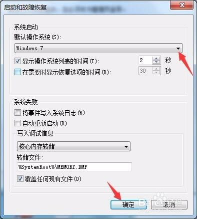 2. 方法二:在桌面上右键点击“计算机”,在右键列表中点击“属性”。点击“高级系统设置”,在系统属性“高级”下点击“启动和故障修复”下的“设置(T)按钮”。点击“默认操作系统”下方的三角形按钮,选择默认的启动系统,例如Windows 7,然后点击确定。